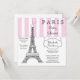 Chic et girly rose et blanc Baby shower boutique design rayé avec la tour Eiffel parisienne sur le côté gauche, une affiche suspendue sur la droite avec votre nom et la chambre pour vos détails douche ci-dessous. Accessoires de coordination disponibles. Créé par Holiday Hearts Designs pour HHBabyShop.