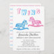 Jolie carte d'invitation baby shower personnalisable à thème cheval rocking. Jeune garçon et fille moderne à cheval rocking invitations jumelles pour votre famille et amis. Le design a deux chevaux rocking, un bleu pour un garçon et un rose pour une fille. L'arrière - plan est blanc mais vous pouvez le modifier en customisant l'invitation.