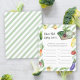 "Un bébé local est en route". Célébrez avec cette fête de baby shower à thème potager d'aquarelle ! Aquarelle concombre, oignon, aubergine, courgettes, tomates jaunes et rouges, radis, carottes, poivre chaud, poivre jaune doux, pois et chou, brocoli et betterave sur une planche à découper. Aquarelle de récolte biologique.