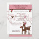 Un thème baby shower forêt/forêt avec invitation aux cerfs de bébé et maman dans des tons roses et marrons, idéal pour une fille !