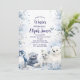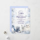 Winter ONEderland First Birthday Invitation Card with Arctic Animals and Frozen Leaves in Blue Colors.