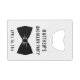 Cet élégant ouvre-bouteille de cravate à arc en tuxedo noir est une faveur de mariage amusante que vous pouvez donner aux gars, y compris vos groomsmen, comme une faveur de votre sortie de bachelor soirée. Personnalisez avec le nom du marié et les détails de la fête de célibataire. Les couleurs et la police du texte et de l'arrière - plan peuvent être modifiées selon vos préférences.