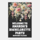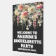 Affiche de bienvenue Bachelorette Party en acrylique bleu. #zazzlemade #Bachelorette Party #signe d'accueil #floral #flower #modern #élégant #simple #noir #acrylique #signe d'accueil #acrylique #signes de servitude