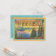 Fabuleux week-end d'escapade de Bachelorette invitations à une destination de lac ou de montagne. Comprend une carte postale vintage teintée à la main avec un look texturé de lin. Joli coucher de soleil sur le lac aux pins. Idéal pour faire du camping, du glamping ou une destination rustique avec ses copines !