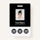 Personnalisez facilement ce badge personnalisé de nom d'employé avec photo, code de barre d'analyse et 3 logos d'entreprise multiples. Vous pouvez télécharger 3 logos d'entreprise différents, parfaits pour les partenariats et les sponsors. Un design d'entreprise simple en noir et blanc entièrement personnalisable en tailles avant et arrière, sans-serif polices de base et moderne et un look professionnel et clair. Disponible avec cordon, clip métallique ou avec rétractable. Pas de commande minimum.