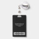 Personnalisez facilement ce badge personnalisé pour employés avec photo, code-barres et 3 logos d'entreprise multiples. Vous pouvez télécharger 3 logos d'entreprise différents, parfait pour les partenariats et les sponsors. Un design simple et professionnel en noir et blanc totalement personnalisable sur les tailles avant et arrière, des polices basiques et modernes sans serif et un aspect professionnel et clair. Disponible avec un cordon, un clip métallique ou rétractable. Aucune commande minimum.