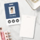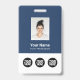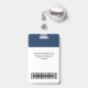 Personnalisez facilement ce Badge de nom d'employé personnalisé avec photo, code-barres scannable et 3 logos d'entreprise multiples. Vous pouvez télécharger 3 logos d'entreprise différents, parfait pour les partenariats et les sponsors. Un design d'entreprise simple dans des couleurs bleu marine et blanc entièrement personnalisable en tailles avant et arrière, polices basiques sans empattement et modernes et un look professionnel et clair. Disponible avec un cordon, un clip métallique ou rétractable. Aucune commande minimum.