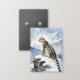 A pretty wildlife button with an illustration of a majestic snow leopard perched on a craggy, snow-covered peak, gazing out at a vast, frozen mountain range.