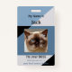 Insigne de nom contenant votre propre photo ou logo personnalisé et des textes sur un arrière - plan géométrique bleu et noir