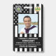 Identifiez-vous facilement, vous et votre agent correctionnel et votre geôlier à l'établissement correctionnel avec ces drapeaux de ligne gris mince personnalisés photo, logo, code à barres, badges de carte d'identité de l'agent correctionnel. Personnalisez avec l'agent de correction photo, nom, numéro d'insigne, détails et prison, prison ou établissement de correction. Customisez avec le logo de votre service de correction, le sceau d'état et le code à barres. Ce mince badge de carte d'identité de geôlier en argent est parfait pour tous les agents correctionnels, les marins, les gardiens de prison et le personnel. DROIT D'AUTEUR © 2020 Judy Burrows, Black Dog Art - Tous droits réservés. Officier correctionnel Logo de photo Prison Jailor ID Badge