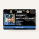 Le badge d'identification personnalisé du service de police comporte un emblème de police en haut qui peut être customisé à votre service ainsi qu'un emplacement pour le logo de l'État. Customisez avec la photo de l'officier sur la gauche. À côté de la photo, le nom de l’officier, son numéro d’insigne, son grade et son ministère sont affichés. Ajoutez votre propre code à barres au dos de la carte, ainsi que les dates d'émission et d'expiration, et la description de l'officier, du capitaine, du chef ou de l'employé de bureau.