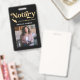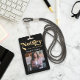 Badge professionnel élégant et tendance pour l'agent de signature de prêt notaire avec un faux script calligraphié or ''notaire'' sur fond noir. Personnalisez avec vos coordonnées.