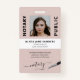 Typographie moderne professionnel juridique certifié notaire avocat de droit consultant personnalisé rose poussiéreux badge noir d'identification avec élégant script de calligraphie et logo de stylo. ++++++++++++++ Facile à personnaliser avec votre photo, vos détails et le code à barres des deux côtés.
