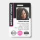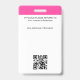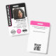 Faites une impression professionnelle avec ce badge d'identité design et moderne. Un modèle recto-verso personnalisé avec votre photo d'identité, votre nom, vos références et un code QR scannable. Vous pouvez également ajouter jusqu'à trois symboles ou logos d'accréditation. Customisez le texte pour convenir à votre entreprise. Parfait pour un Notaire Public, Agent de signature de prêt, Notaire Mobile, Agent de livraison de confiance de notaire (CNTDA). Couleurs design imprimées : rose vif, noir et blanc. Magasinez la collection en ligne pour des idées et des fournitures de produits plus populaires, conçus pour les notaires!
