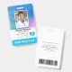 Badge d'identification photo vertical avec un modèle pour que vous ajoutiez vos coordonnées. Possibilité de l'utiliser pour plusieurs postes car vous pouvez modifier les informations pour une autre profession. Photo de l'employé et champs pour le titre ou le rôle, l'hôpital ou l'entreprise, le numéro d'identification de l'employé et "aide à domicile" ou toute autre initiale ou texte décrivant la certification. Zone de modèle de logo ou vous pouvez conserver notre cœur avec un blason médical à l'intérieur. Au dos, informations de retour en cas de perte ainsi qu'un modèle d'image de code-barres. Si vous n'avez pas besoin d'ajouter votre code-barres ou QR code, sélectionnez simplement "personnaliser davantage" et supprimez notre image. Conception avec une impression de lavis aquarelle aqua, sarcelle, bleue et violette derrière la photo de l'employé.