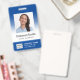 Téléchargez votre propre logo et votre photo et faites des étiquettes de nom et des badges d'identification d'employé personnalisés pour votre entreprise. modèle facile à utiliser. Vous pouvez redimensionner la photo, le logo et le code à barres avec l'outil de conception. Pour redimensionner la photo, vous devez d'abord la démasquer. Les polices et les couleurs sauf la partie blanche du dégradé sont personnalisables.