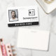 Badge d'employé de bureau avec un design minimaliste épuré en noir et blanc. Ajoutez une photo de l'employé ainsi que son nom et sa profession. Personnalisez davantage avec votre logo d'entreprise et le nom de l'entreprise.