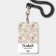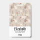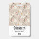 Badge personnalisé avec un motif nordique mignon. Hiver, pins, ours, rennes et écureuils. Couleur marron clair.