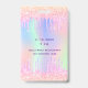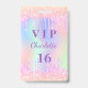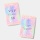 Pour une fête d'anniversaire Sweet 16, 16e (ou tout âge). Un arrière - plan holographique branché aux couleurs pastel arc-en-ciel rose, violet, or rose, vert menthe. Décoré avec des gouttes de parties scintillant, la peinture goutte à goutte. Personnalisez et ajoutez un nom et 16 ans. Lettres violettes. Retour : détails de votre fête.