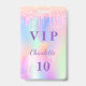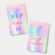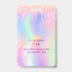 Pour une fête d'anniversaire sur le thème de la licorne 10ème (ou tout âge). Un arrière - plan holographique branché aux couleurs pastel unicorne et arc-en-ciel rose, violet, or rose, vert menthe. Décoré avec des gouttes de parties scintillant en or rose, rose et violet. Personnalisez et ajoutez un nom et 10 ans. Lettres violettes. Retour : détails de votre fête.