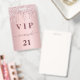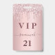 Un badge moderne, élégant et glamour pour une fête d'anniversaire de 21e (ou tout âge). Un dégradé rose vif arrière - plan avec fausse parties scintillant goutte-à-goutte, la peinture goutte à goutte. Avec le texte : VIP. Personnalisez et ajoutez un nom, un âge, des détails de la fête au dos. Le nom est écrit avec un script de style moderne écrit à la main avec des swashes. Pour que les swashes ne suppriment que le nom de l'échantillon, laissez les espaces ou émoticônes devant et après le nom.