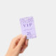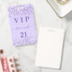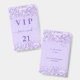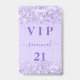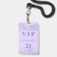 Un badge moderne, élégant et glamour pour une fête d'anniversaire de 21e (ou tout âge). Un arrière - plan violet avec des confettis violets, de couleur lavande. Avec le texte : VIP. Personnalisez et ajoutez le nom, l'âge, l'adresse/la date. Le nom est écrit avec un script de style moderne écrit à la main avec des swashes. Pour que les swashes ne suppriment que le nom de l'échantillon, laissez les espaces ou émoticônes devant et après le nom.