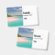 Name tag with a beautiful photograph. A scenic tropical beach with aquamarine water and a white sandy beach with a lush forest in the back.