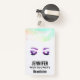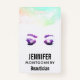 Un nom avec une belle aquarelle peinte illustration. De beaux yeux et des sourcils pourpres, les yeux fermés, montrant de longs cils élégants. Bordure abstraite le long du haut avec des couleurs tourbillonnant vertes, bleues et roses.