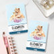 badge de nom personnalisé avec un joli tableau aquarelle d'un lion mère tenant son bébé. Un joli bouquet fleuri violet en dessous ajoute une touche douce à cette image douce et adorable. Arrière - plan bleu clair.
