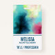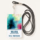 Insigne de nom avec un design abstrait cool et élégant. Les aquarelles se mélangent pour créer l'illusion d'une image spatiale. Vert avec des tourbillons de violet, jaune et rouge clair se mélangent avec un peu de points et d'étoiles blancs. Un cool trippy création.