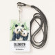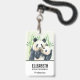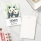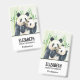 Nom badge avec une jolie illustration aquarelle montrant une mère noire et blanche et un bébé panda ourson ensemble. Maman tient son petit au milieu de tiges de bambou vertes.