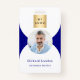 Un fond bleu marine aux formes d'arc blanc. Texte bleu. Ajoutez le logo de votre entreprise, une photo, un nom et un titre. Retour : Ajoutez le nom, l'adresse et l'URL de votre site Web au code QR.