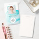 Ce badge a un arrière - plan d'aquarelle bleu aqua et peut être personnalisé avec votre nom. La copie peut être modifiée et vous pouvez modifier la couleur et la police. Ajoutez votre logo à l'avant et une photo. Au verso, ajoutez les informations de votre société, l'adresse, le site Web, le numéro d'identification du client et le code QR.