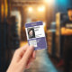 Insigne de nom avec un arrière - plan bleu foncé, une photo et un modèle de logo. customisez facilement ce badge à votre marque. Pour une personnalisation supplémentaire, envoyez-moi un message ci-dessous. Je serais très heureux de réaliser vos souhaits de design !