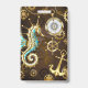 Badge Arrière - plan en bois avec cheval de mer mécaniqu