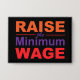 Relevez le message militant Salaire minimum sur un bouton attrayant. Les images sont copyright © Sandy Long, tous droits réservés. Cette conception est sur beaucoup d'autres articles amusants dans mon magasin d'activisme artistique. Nous méritons un salaire vivant. La productivité a augmenté mais les riches gardent tous les bénéfices.