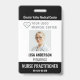 Personnalisez ce badge d'identification avec une photo, un titre, un nom d'hôpital, un logo d'hôpital, un numéro d'identification et un code à barres pour le dos.