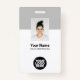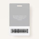 Personnalisez facilement ce badge personnalisé de nom d'employé avec photo, code de barre d'analyse et logo d'entreprise. Un design d'entreprise simple dans des tons minimalistes gris et blancs entièrement personnalisable en tailles avant et arrière, sans-serif polices de base et moderne et un look professionnel et clair. Disponible avec cordon, clip métallique ou avec rétractable. Pas de commande minimum.