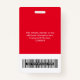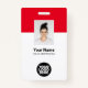 Personnalisez facilement ce badge personnalisé de nom d'employé avec photo, code de barre d'analyse et logo d'entreprise. Un design d'entreprise simple en rouge et blanc entièrement personnalisable en tailles avant et arrière, sans-serif polices de base et moderne et un look professionnel et clair. Disponible avec cordon, clip métallique ou avec rétractable. Pas de commande minimum.