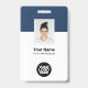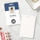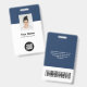 Personnalisez facilement ce badge personnalisé de nom d'employé avec photo, code de barre d'analyse et logo d'entreprise. Un design d'entreprise simple en bleu marine et blanc entièrement personnalisable en tailles avant et arrière, sans-serif polices de base et moderne et un look professionnel et clair. Disponible avec cordon, clip métallique ou avec rétractable. Pas de commande minimum.