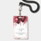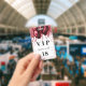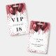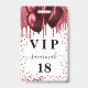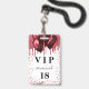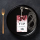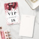 Un badge moderne, élégant et glamour pour une fête d'anniversaire de 18 ans (ou tout âge). Un fond blanc avec des gouttes de paillettes fausses rouges et des ballons rouges. Avec le texte : VIP. Personnalisez et ajoutez le nom, l'âge, l'adresse/date. Le nom est écrit avec un style de lettrage manuscrit moderne avec des fioritures.