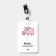 Nommez le badge avec l'illustration d'un tas de ballons dans les couleurs rose et gris argenté.
