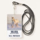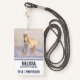 Nom badge avec une photo d'un magnifique cheval blanc. Traverser un champ couvert de neige. Majestueux et beau.