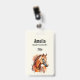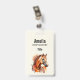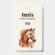 Nom badge avec une belle illustration. Tête de cheval couleur châtaignier et haut du corps. Avec des patchs d'aquarelle derrière.