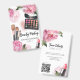 Pleine de teintes vibrantes et de fleurs fantaisistes, cette impression est un festin visuel parfait pour les maquilleurs, les blogueurs de beauté, les influenceurs et tous ceux qui recherchent une touche d'élégance florale colorée avec une touche de glamour. Avec des pivoines rose vif, une palette de maquillage, des pinceaux de maquillage et du rouge à lèvres. Vous pouvez customiser tout le texte, et ajouter votre URL de site Web au code QR. Ou retirez le QR si vous préférez. Si vous utilisez pour un grand salon de beauté, vous pouvez supprimer le nom du participant et y placer une ligne pour que les invités puissent remplir leur nom. Aquarelle Floral Beauty Conference Maquillage Artiste Badge