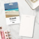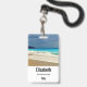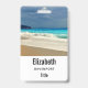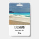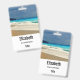 badge de nom personnalisé avec une belle photo représentant une mer bleu turquoise et une plage de sable avec des vagues de surf mousseux.