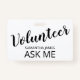 Un volontaire moderne me demande un badge de nom pour les employés, les bénévoles et le personnel de l'événement. Customisez avec votre nom. Type de script tendance. Moderne, tendance, simple badge tout usage.