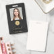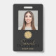 Make a lasting first impression with this elegant black and gold photo employee ID badge, featuring your name in a modern script font. The clean, minimal layout highlights your personal brand while keeping the focus on your professional image. Add your contact information, title, and social media details on the back for a sleek, organized presentation. Perfect for creatives, beauty professionals, entrepreneurs, and anyone who wants a timeless design that stands out with style and confidence.