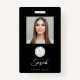 Make a lasting first impression with this elegant black and white employee ID badge design, featuring a customizable photo on the front with your name in a modern script font. The clean, minimal layout highlights your personal brand while keeping the focus on your professional image. Add your contact information, title, and social media details on the back for a sleek, organized presentation. Perfect for creatives, beauty professionals, entrepreneurs, and anyone who wants a timeless, sophisticated card that stands out with style and confidence.