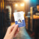 Badge Bleu moyen, ID photo de l'employé avec code QR, en